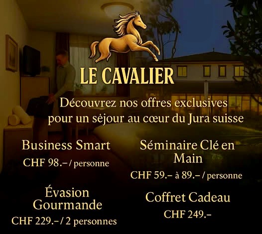 Nous sommes ravis de vous annoncer l’ouverture prochainement de l'Hôtel Restaurant le Cavalier, votre nouvelle destination d’élégance et de confort. Situé au cœur de Soyhières , notre établissement allie charme, modernité et services de qualité pour répondre à toutes vos attentes.