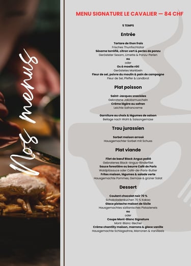 Les menus du restaurant Le Cavalier pour la période janvier, février