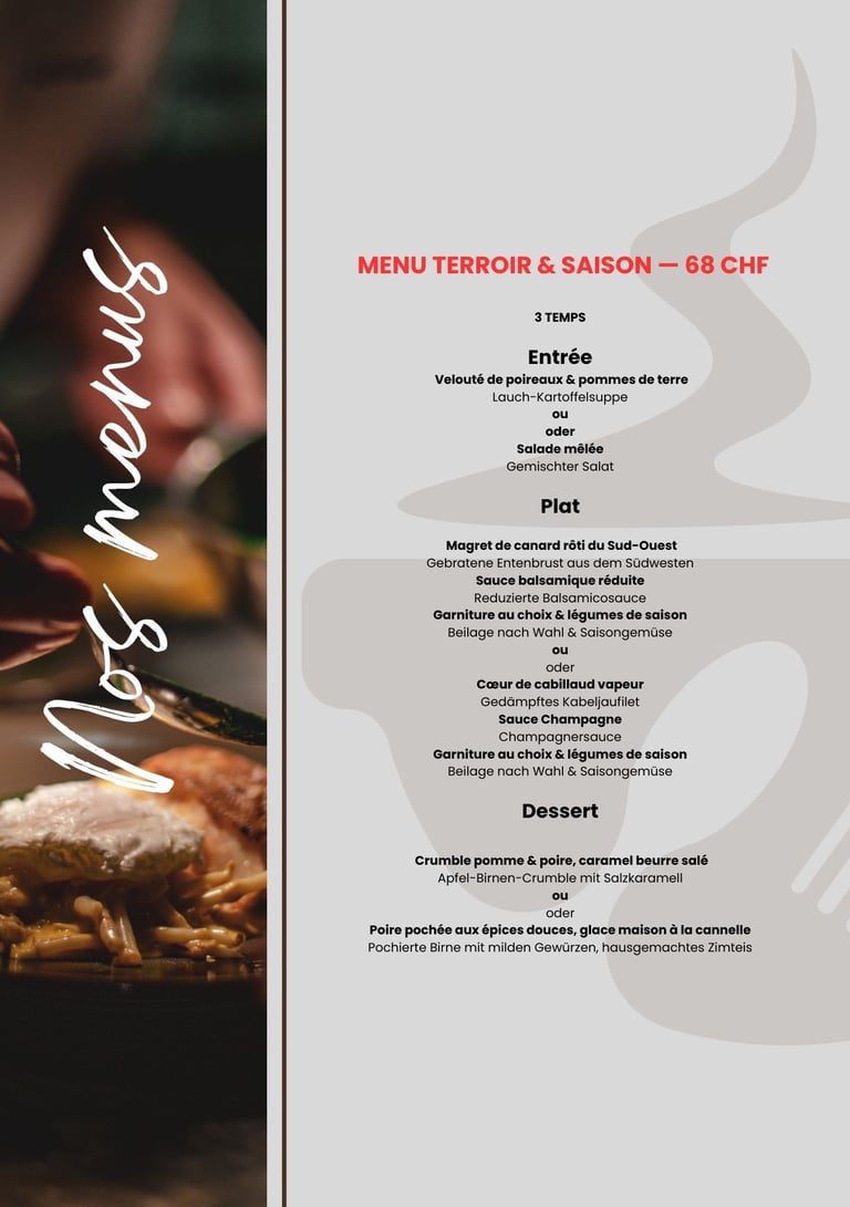 Entrée + Plat : le parfait équilibre entre rapidité et plaisir. Formule Gourmande — 28 CHF